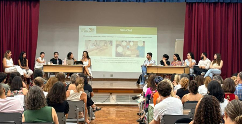 Em março, o Núcleo de Educação Inclusiva do Vera participou de mais um encontro da Jornada Escolas Protagonistas, projeto desenvolvido pelo Centro de Educação Terapêutica Lugar de Vida. Gláucia Affonso e Clélia Cortez, coordenadoras do Núcleo de Educação Inclusiva, e Júlia Russo, acompanhante terapêutica do Ensino Médio, apresentaram a educadores e educadoras das instituições parceiras dois artigos produzidos a partir de estudos realizados ao longo de 2025 sobre as diferentes modalidades de Atendimento Educacional Especializado (AEE), abordando as barreiras escolares, os entraves estruturais e os desafios e conquistas da educação inclusiva.