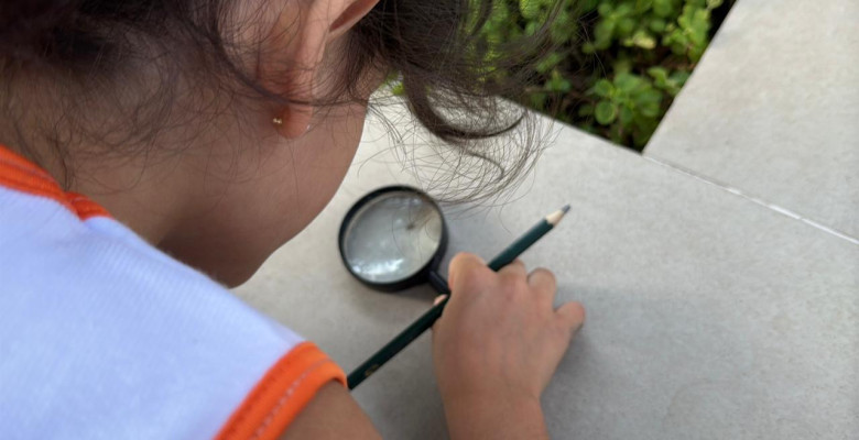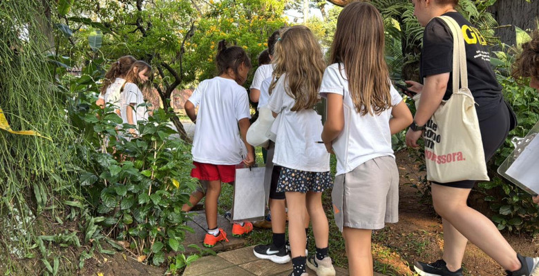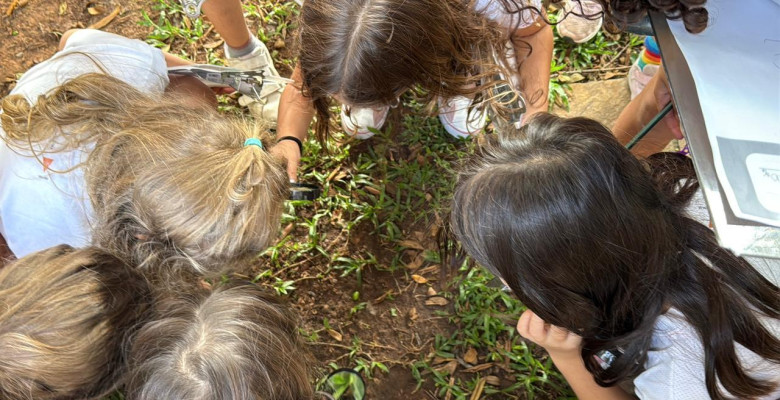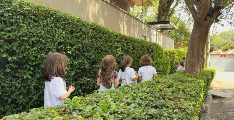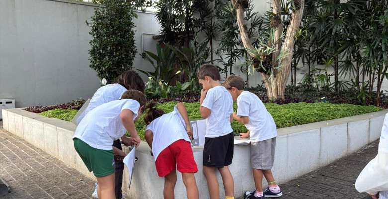 Essa semana, as turmas do 1º ano da tarde participaram do 'bug hunt', uma divertida atividade que propicia a exploração e observação de insetos e aracnídeos nos arredores da Escola. Durante o percurso, as crianças retomaram conteúdos da língua inglesa estudados em sala de aula e fizeram registros escritos — um exercício que também dialoga com o momento de alfabetização que estão vivendo. "O ensino de Inglês no Vera acompanha o desenvolvimento das crianças, valorizando seus interesses e experiências. As aulas priorizam o uso da linguagem de forma lúdica e significativa, estabelecendo uma relação afetiva com a língua", explica Lika Dafferner, orientadora de Inglês no ciclo do G5, 1º e 2º ano.
